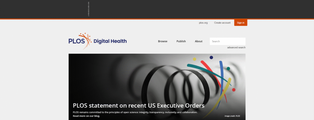 PLOS Digital Health is an open-access journal from the Public Library of Science (PLOS) publishing research on digital tools, AI, mobile health, wearables, and data-driven healthcare.