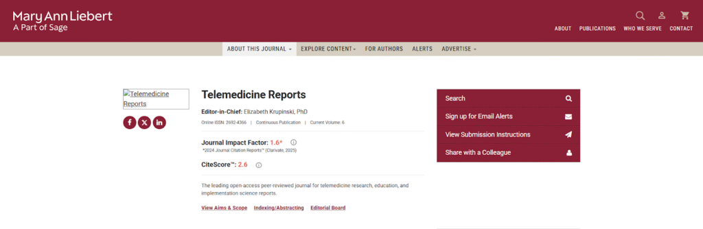 The audience includes clinicians, researchers, and digital health developers seeking a credible but accessible venue for telehealth evidence. Article processing charges of USD 2,500 apply, consistent with Mary Ann Liebert’s open-access policy.