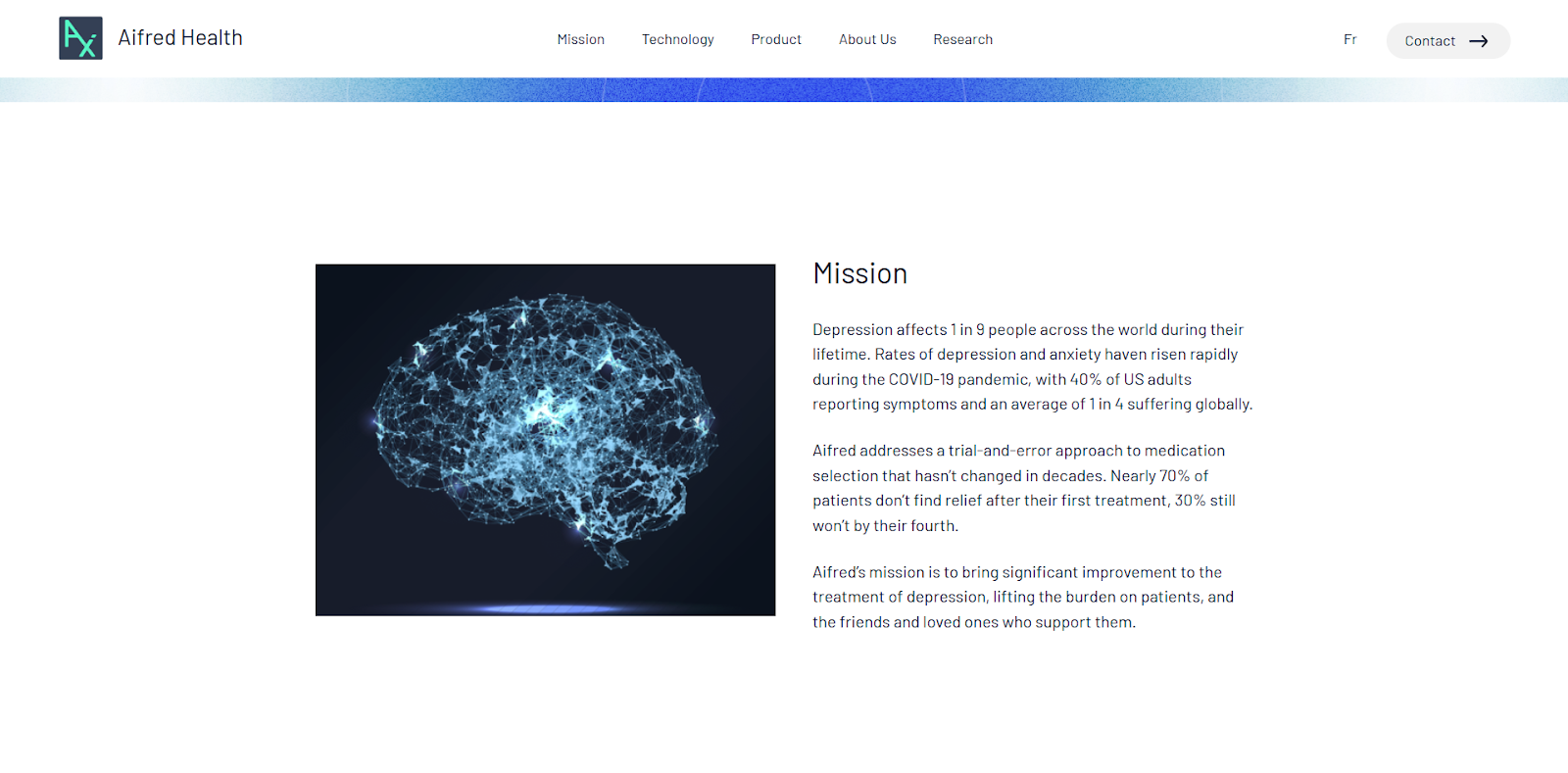 Aifred Health has raised US$4 million in seed financing led by MEDTEQ+ and BDC Capital, and later secured an additional US$1 million in prize funding as runner-up in the IBM Watson AI XPRIZE. The company develops an AI-powered clinical decision support tool that helps physicians personalize treatment plans for patients with moderate to severe depression by predicting which therapies are most likely to succeed.