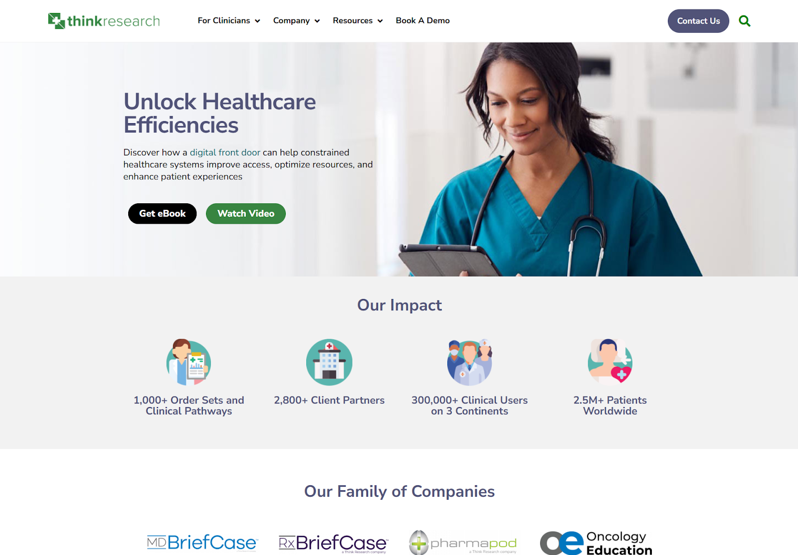 Think Research provides digital decision support and knowledge platforms that help clinicians deliver better care through tools like order sets, eForms, eReferrals, onboarding modules, and clinical content libraries. Its solutions are used across Canada and abroad to improve workflows and patient outcomes.