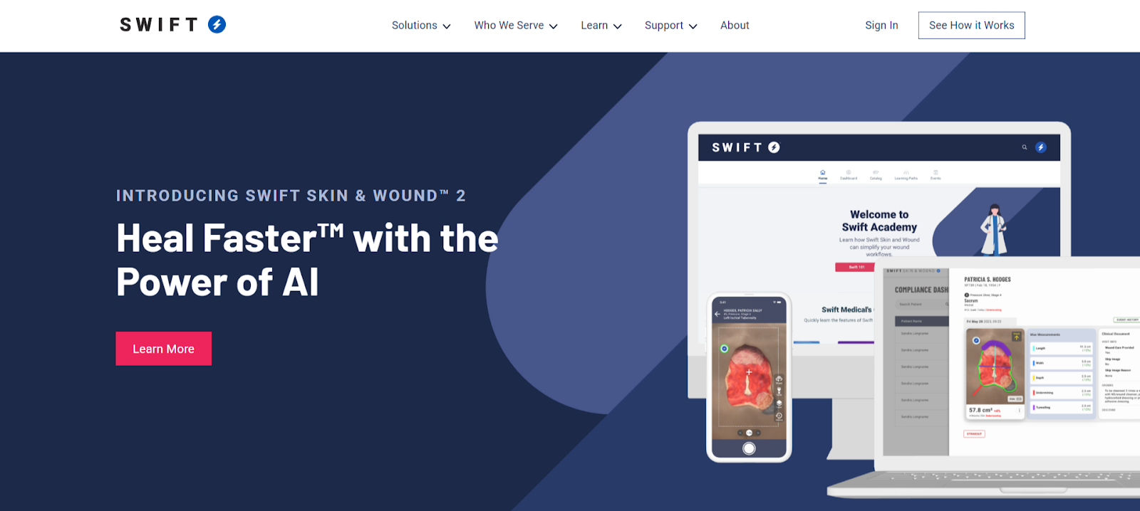 Clinical results show measurable outcomes, including up to 35% faster wound healing and a 15% reduction in hospitalizations. To expand equitable access, Swift secured a CAD 4.5 million co-investment from Canada’s DIGITAL cluster in 2024, reinforcing its role as a leader in evidence-backed, technology-enabled wound care.