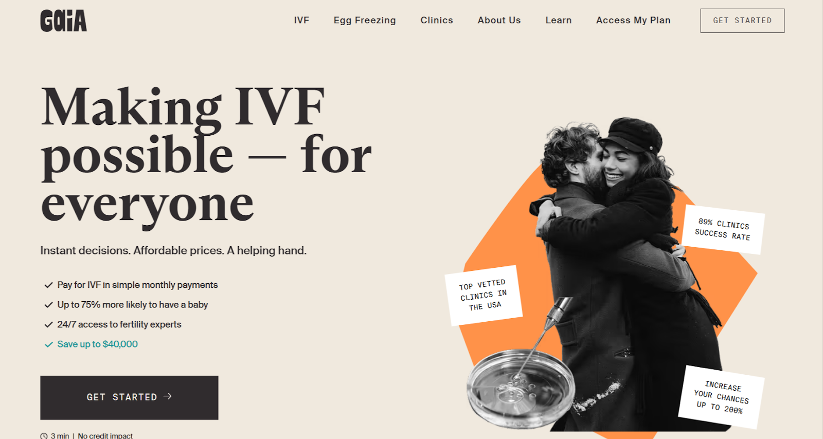 Gaia Family (commonly known as Gaia) offers financing and insurance products to make IVF more affordable (£2,000–£4,000 as of writing), with repayment tied to successful outcomes. It raised $20M in a 2022 Series A led by Atomico and has backing from Lloyd’s of London. The company was named one of Wired’s “hottest startups in London” and is pioneering a financial layer for fertility care.